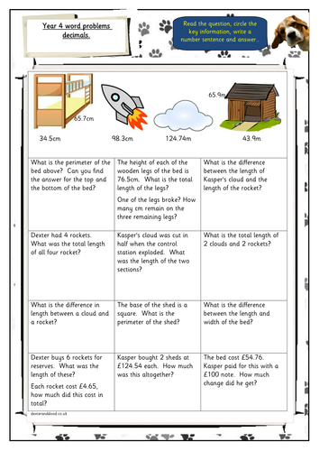 Year 4 Decimal Word Problems Differentiated Teaching Resources