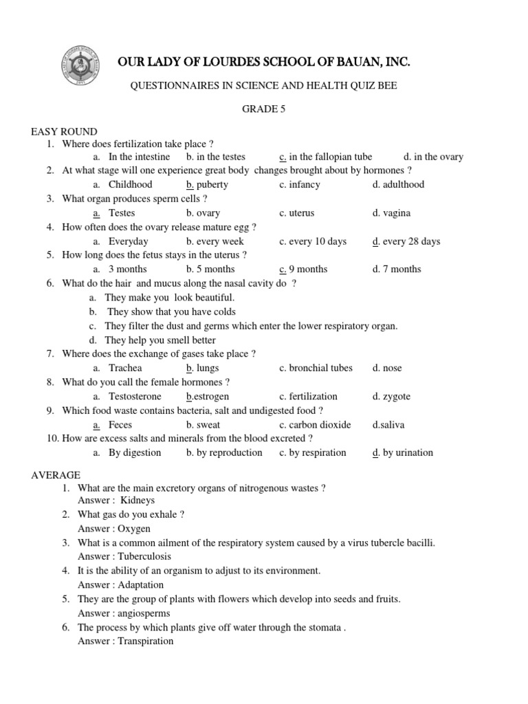 Science Quiz Bee Questions And Answers For Grade 4 Philippines Pdf